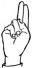 На ћирилици написано МИОДРАГ РУЧНОВ састоји се из 13 слова [?]. Исписано ћириличном једноручном азбуком за глувонеме: